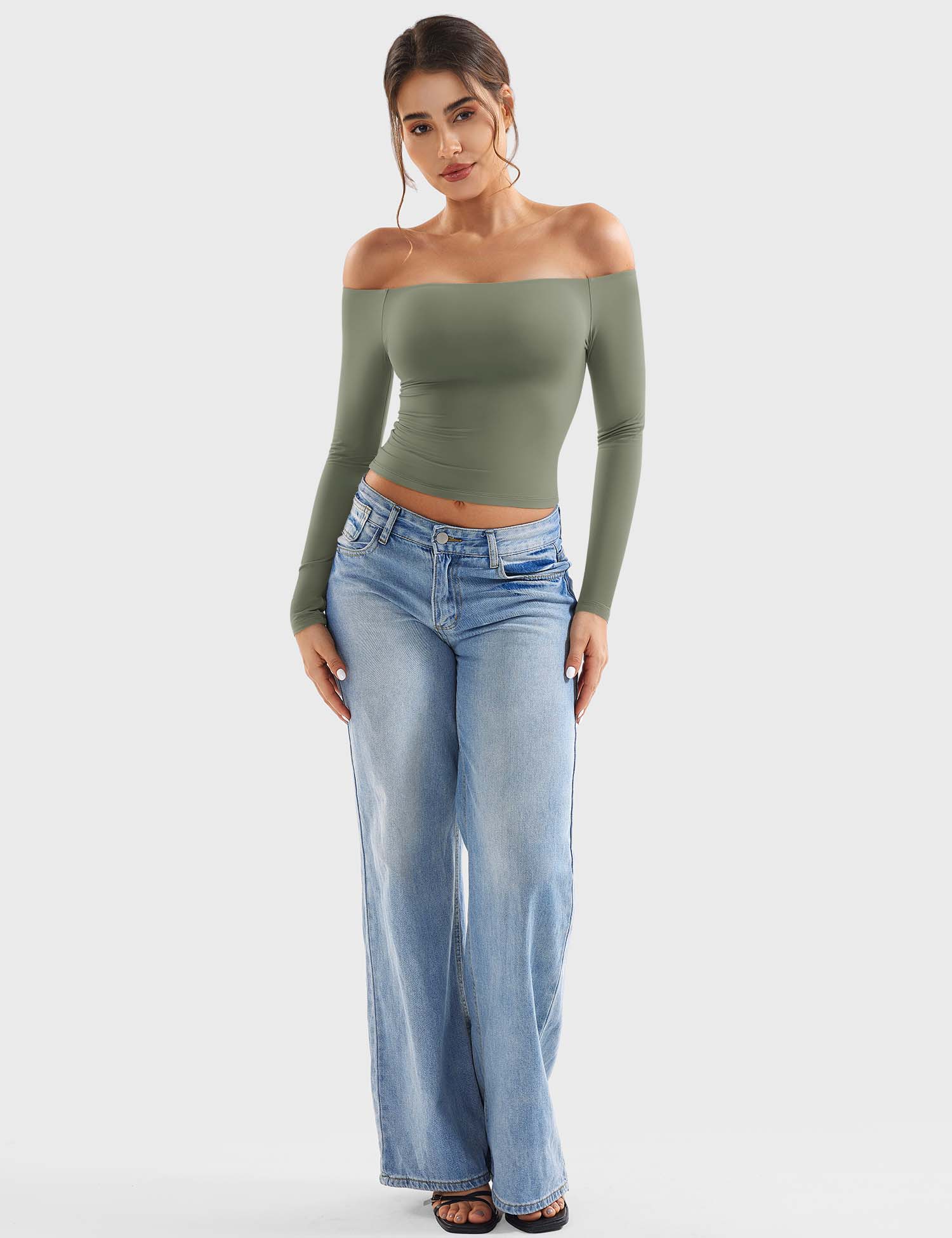 The Luzlie Top features a chic off-shoulder design perfect for Y2K style. Made from ultra-soft, double-lined fabric with four-way stretch, it feels like a second skin. Ideal for autumn and winter, this lightweight top elevates any outfit effortlessly.